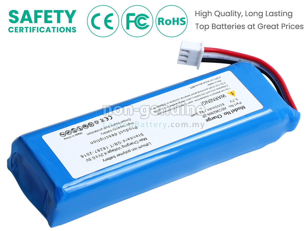 All our high-grade replacement batteries for JBL AEC982999-2P speaker have been tested to prove that they can match or surpass original JBL battery performance and fit with Original Manufacturer's Specifications. In compliance with international standards, they obtain a series of rigorous safety certifications such as CE, UL, ROHS, ISO9001/9002. In general, this replacement JBL AEC982999-2P battery can be charged/discharged up to more than 600 cycles.