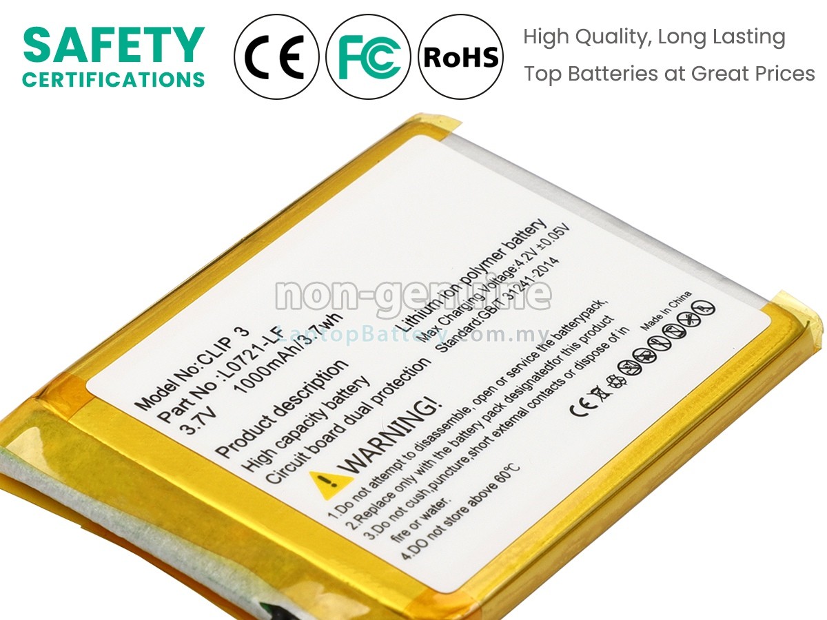 All our high quality replacement speaker batteries for JBL CLIP 3AN come with a 1-year warranty. Warranty is applicable if the buyer has installed the battery properly in the device and has treated the battery correctly.