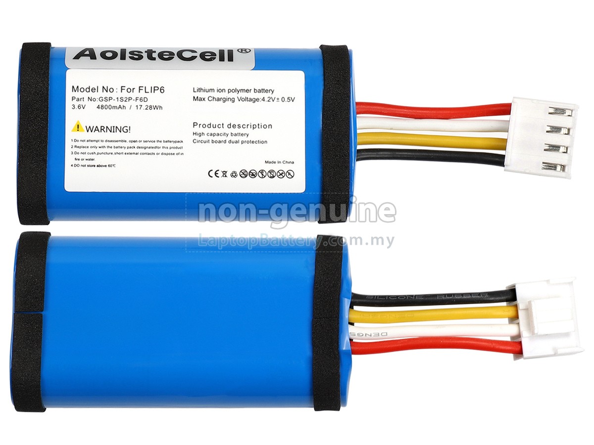 Our Website is your source of high-grade JBL speaker batteries! This brand new 17.28Wh(2 cells) replacement JBL GSP-1S2P-F6D Li-ion battery is made with high-grade cells from Samsung, LG and Panasonic to ensure maximum performance. The housing of the JBL GSP-1S2P-F6D battery pack is made of non flammable and very durable plastic, which is fire-retarded and nonperishable when dropped from low heights.