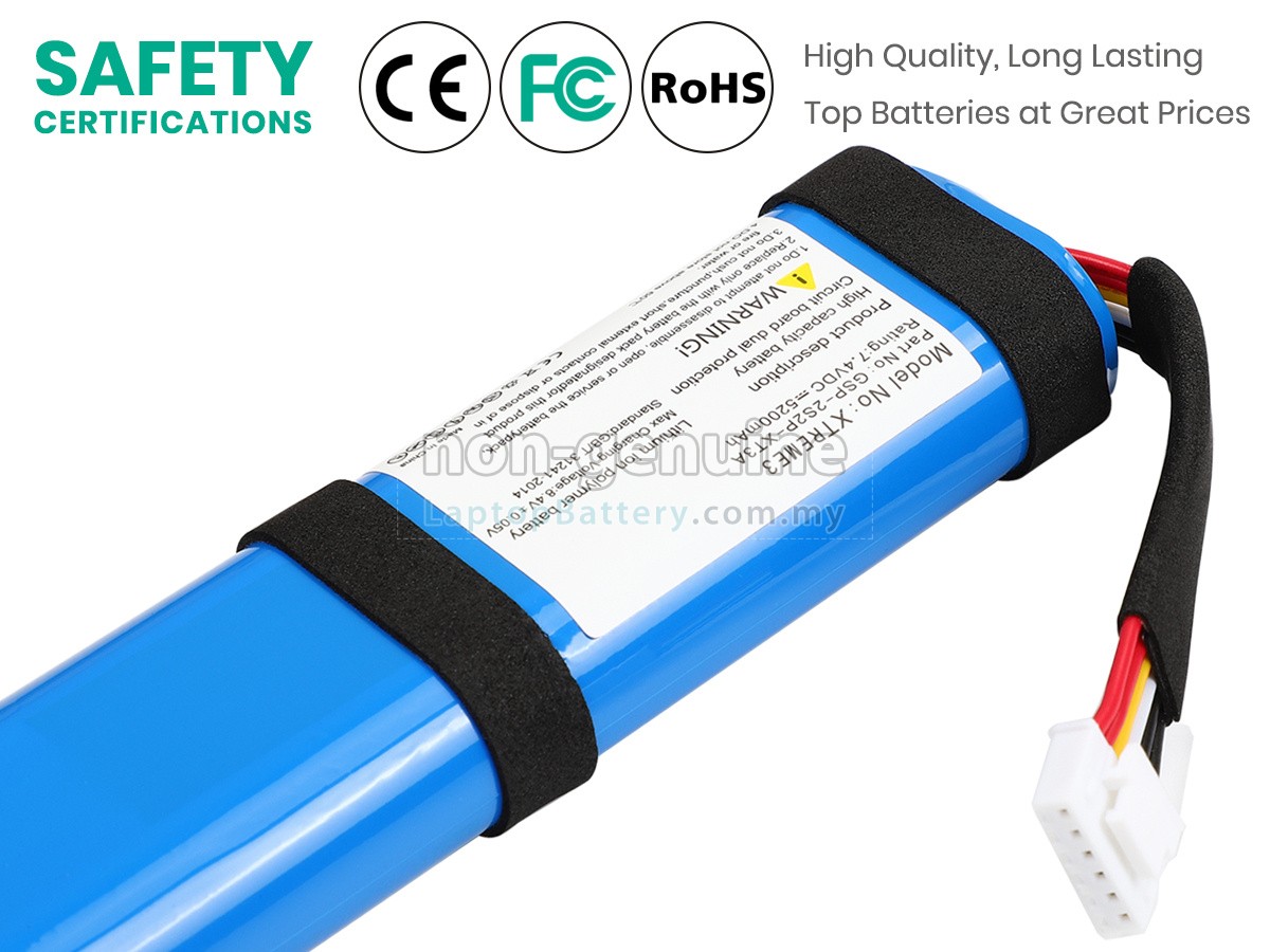 Our Website is your source of high-grade JBL speaker batteries! This brand new 38.5Wh(4 cells) replacement JBL GSP-2S2P-XT3A Li-ion battery is made with high-grade cells from Samsung, LG and Panasonic to ensure maximum performance. The housing of the JBL GSP-2S2P-XT3A battery pack is made of non flammable and very durable plastic, which is fire-retarded and nonperishable when dropped from low heights.