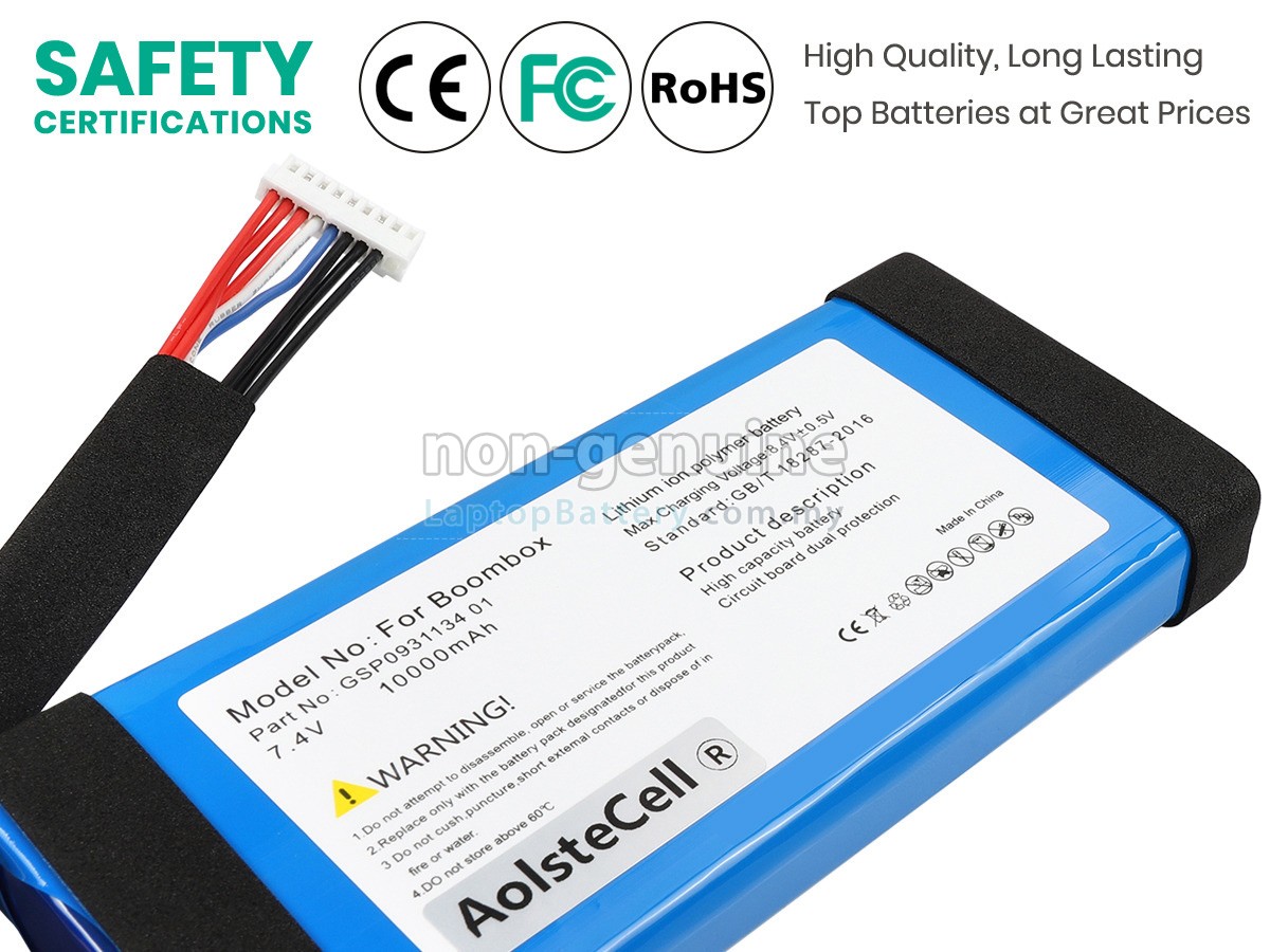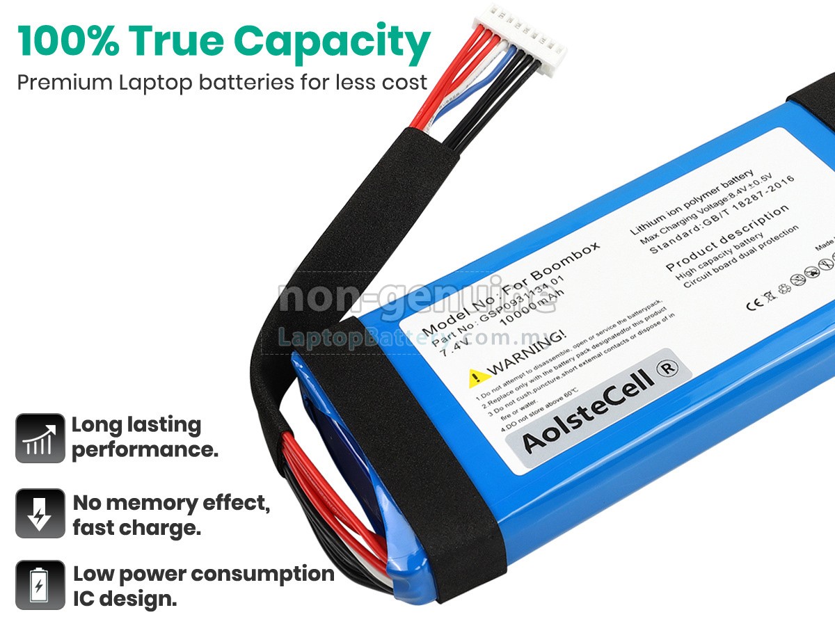 Our Website is your source of high-grade JBL speaker batteries! This brand new 74Wh(4 cells) replacement JBL JEM3316 Li-ion battery is made with high-grade cells from Samsung, LG and Panasonic to ensure maximum performance. The housing of the JBL JEM3316 battery pack is made of non flammable and very durable plastic, which is fire-retarded and nonperishable when dropped from low heights.