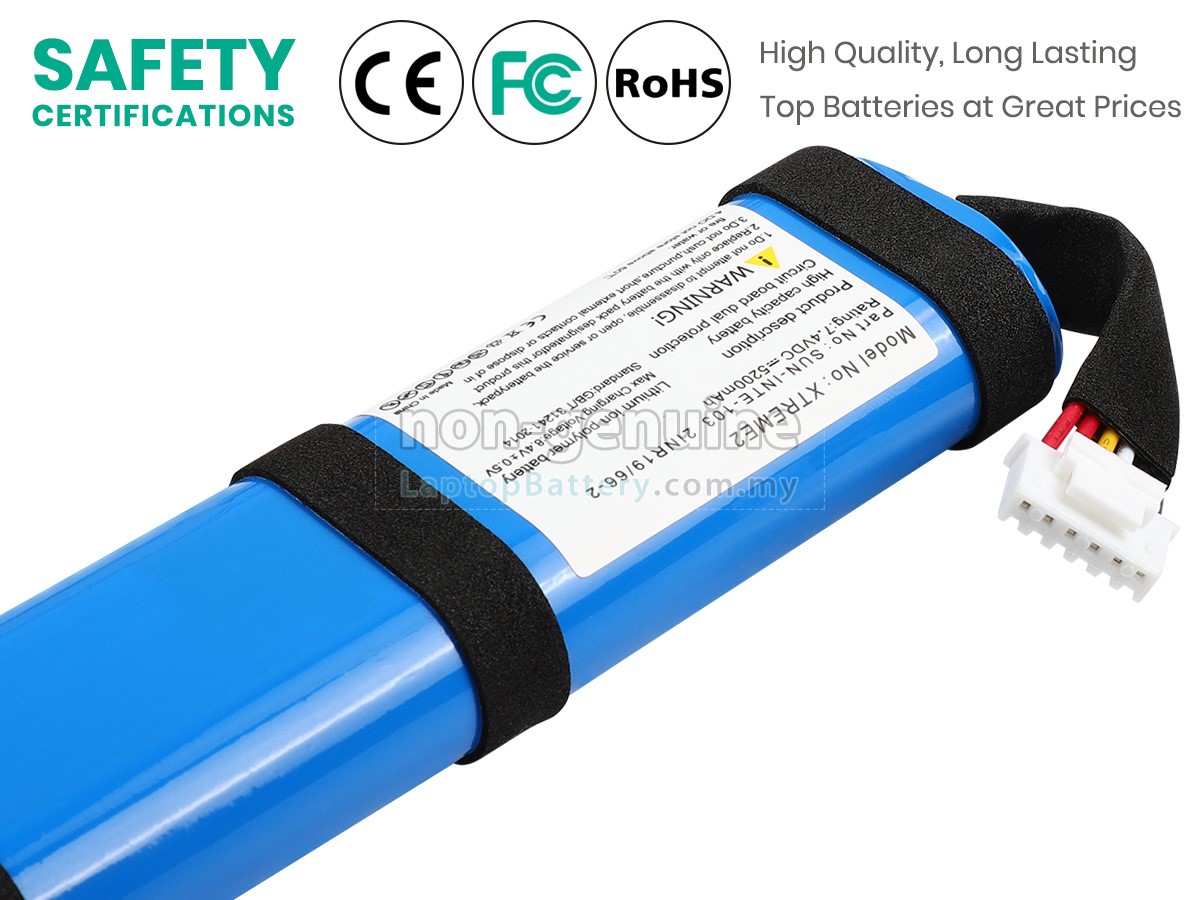Our Website is your source of high-grade JBL speaker batteries! This brand new 38.48Wh(4 cells) replacement JBL XTREME2BLKAM Li-ion battery is made with high-grade cells from Samsung, LG and Panasonic to ensure maximum performance. The housing of the JBL XTREME2BLKAM battery pack is made of non flammable and very durable plastic, which is fire-retarded and nonperishable when dropped from low heights.