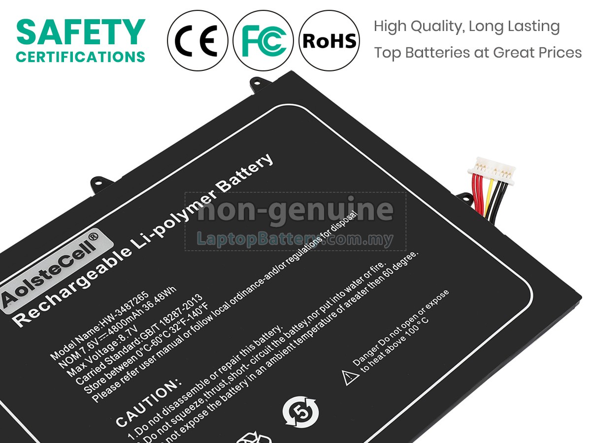 All our high-grade replacement batteries for Jumper HW-3487265 laptop have been tested to prove that they can match or surpass original Jumper battery performance and fit with Original Manufacturer's Specifications. In compliance with international standards, they obtain a series of rigorous safety certifications such as CE, UL, ROHS, ISO9001/9002. In general, this replacement Jumper HW-3487265 battery can be charged/discharged up to more than 600 cycles.