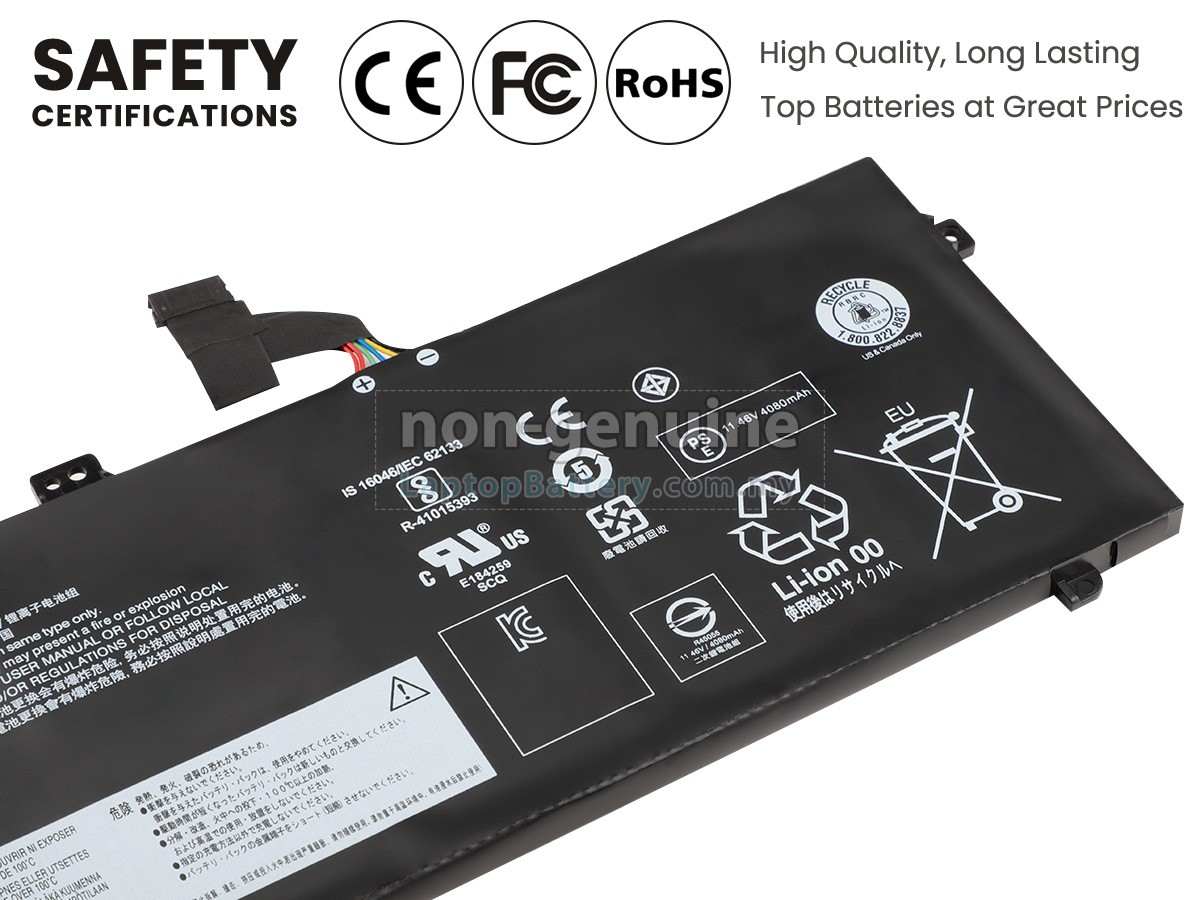 Our Website is your source of high-grade Lenovo laptop batteries! This brand new 48Wh(6 cells) replacement Lenovo 02DL017 Li-Polymer battery is made with high-grade cells from Samsung, LG and Panasonic to ensure maximum performance. The housing of the Lenovo 02DL017 battery pack is made of non flammable and very durable plastic, which is fire-retarded and nonperishable when dropped from low heights.