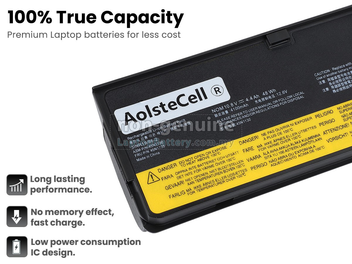 Our Website is your source of high-grade Lenovo laptop batteries! This brand new 4400mAh(6 cells) replacement Lenovo 45N1767 Li-Polymer battery is made with high-grade cells from Samsung, LG and Panasonic to ensure maximum performance. The housing of the Lenovo 45N1767 battery pack is made of non flammable and very durable plastic, which is fire-retarded and nonperishable when dropped from low heights.