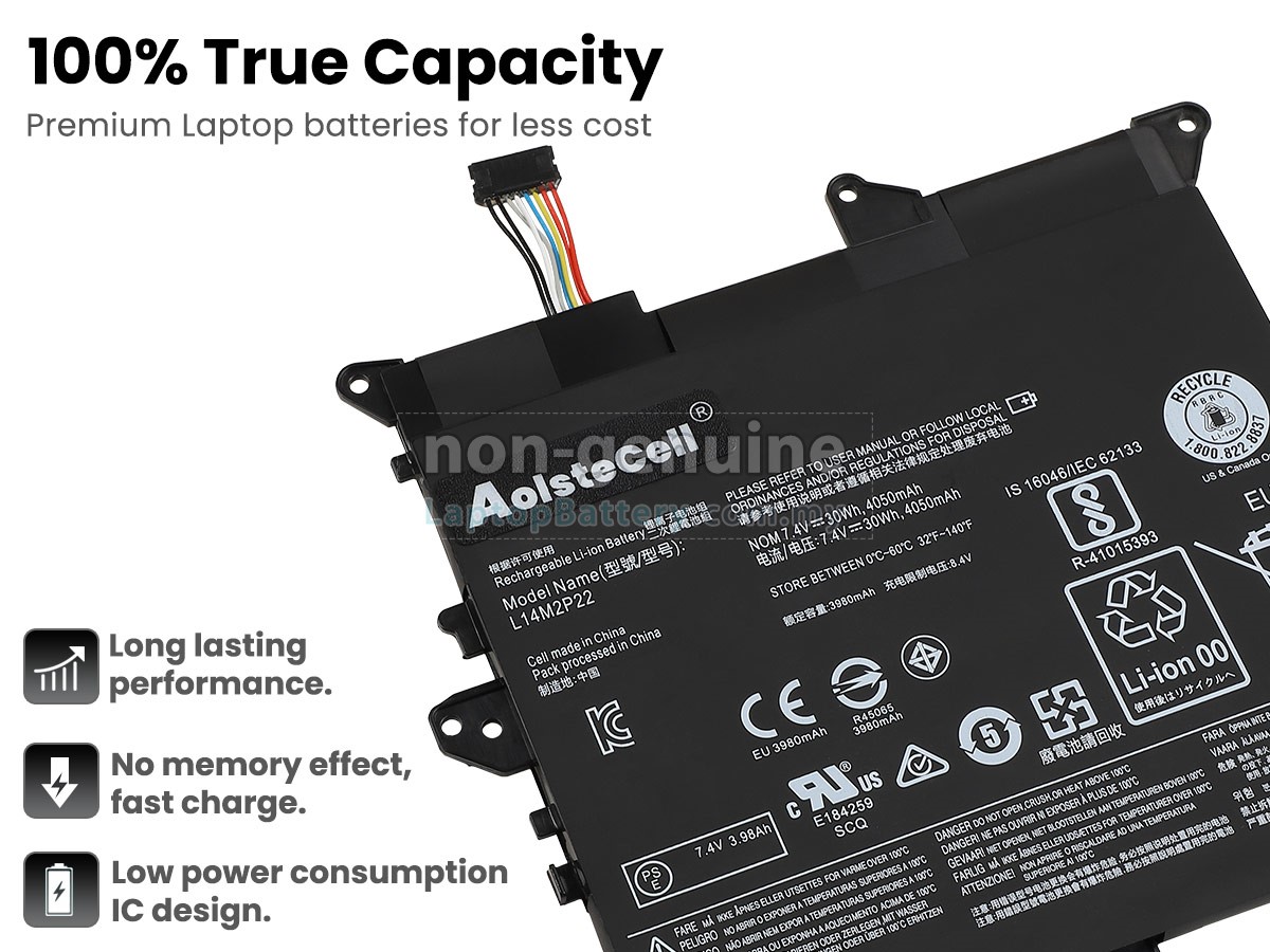 All our high-grade replacement batteries for Lenovo 5B10H09630 laptop have been tested to prove that they can match or surpass original Lenovo battery performance and fit with Original Manufacturer's Specifications. In compliance with international standards, they obtain a series of rigorous safety certifications such as CE, UL, ROHS, ISO9001/9002. In general, this replacement Lenovo 5B10H09630 battery can be charged/discharged up to more than 600 cycles.