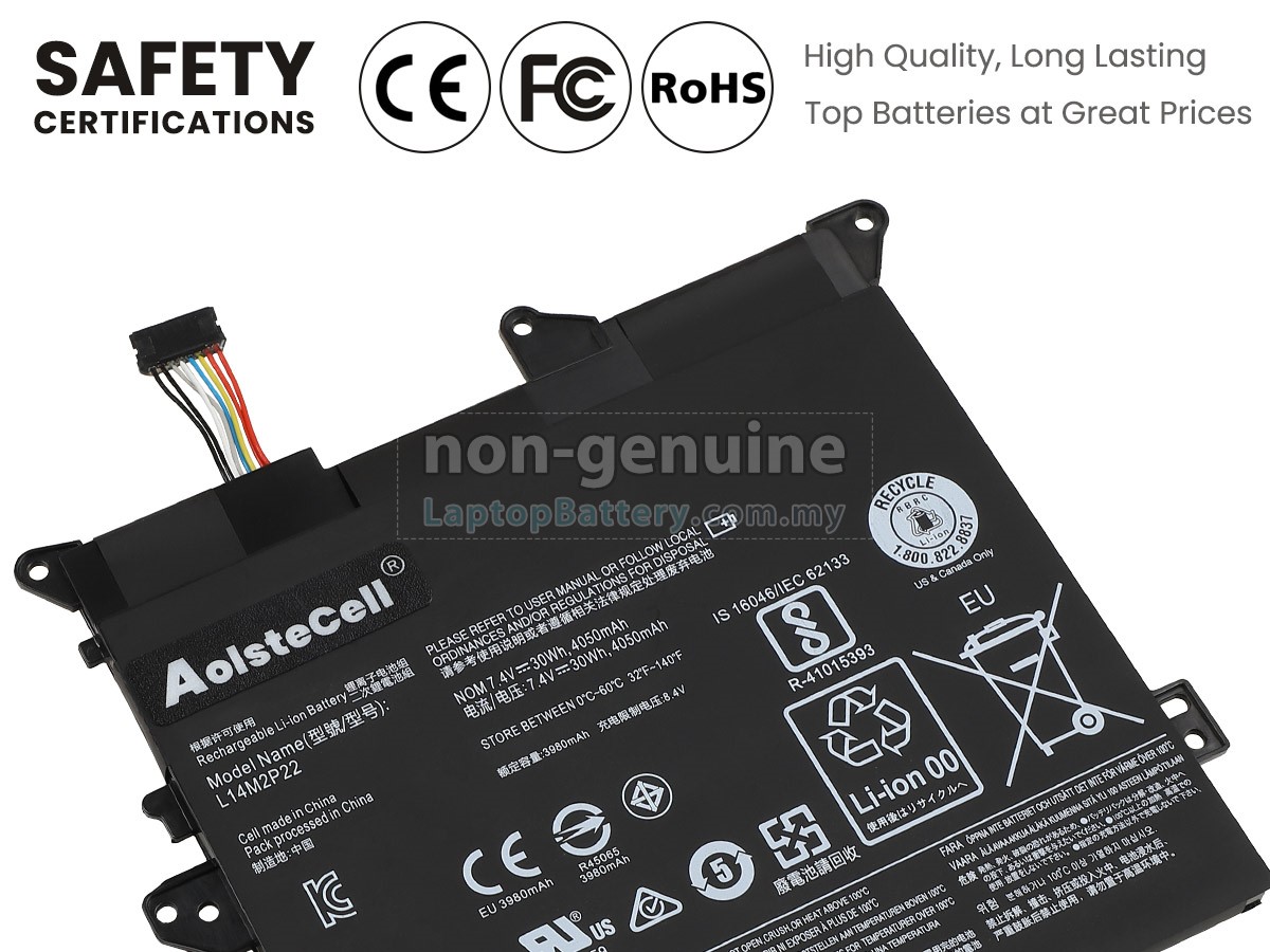 Our Website is your source of high-grade Lenovo laptop batteries! This brand new 30Wh(2 cells) replacement Lenovo 5B10H09630 Li-Polymer battery is made with high-grade cells from Samsung, LG and Panasonic to ensure maximum performance. The housing of the Lenovo 5B10H09630 battery pack is made of non flammable and very durable plastic, which is fire-retarded and nonperishable when dropped from low heights.