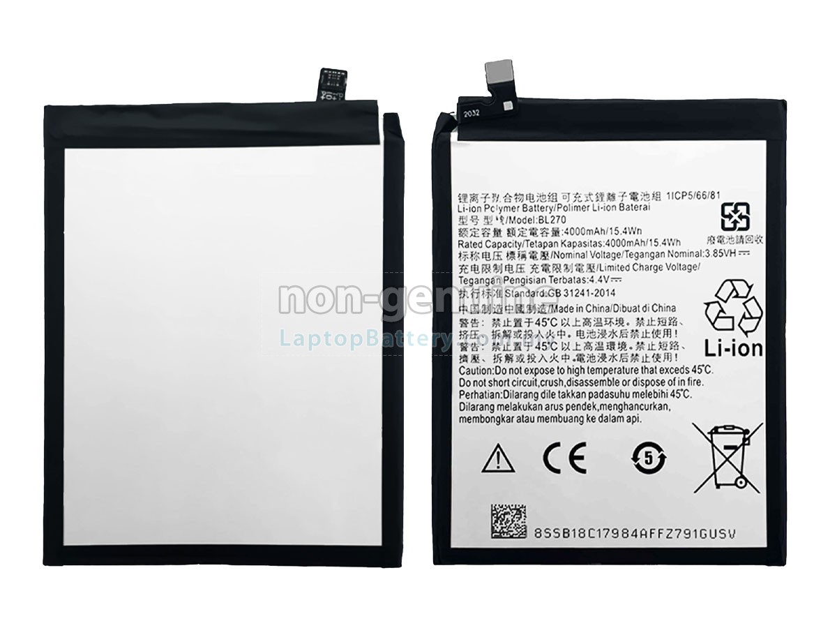 All our high-grade replacement batteries for Lenovo BL270 have been tested to prove that they can match or surpass original Lenovo battery performance and fit with Original Manufacturer's Specifications. In compliance with international standards, they obtain a series of rigorous safety certifications such as CE, UL, ROHS, ISO9001/9002. In general, this replacement Lenovo BL270 battery can be charged/discharged up to more than 600 cycles.