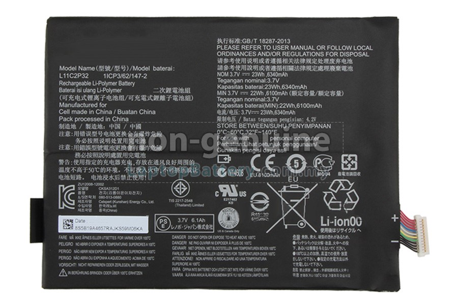Our Website is your source of high-grade Lenovo laptop batteries! This brand new 23Wh(2 cells) replacement Lenovo L12D2P31 Li-Polymer battery is made with high-grade cells from Samsung, LG and Panasonic to ensure maximum performance. The housing of the Lenovo L12D2P31 battery pack is made of non flammable and very durable plastic, which is fire-retarded and nonperishable when dropped from low heights.