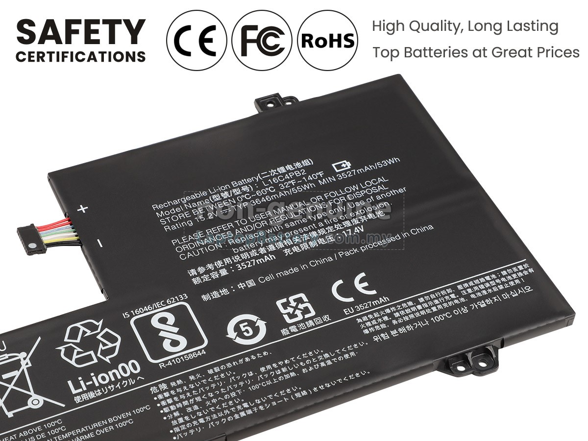 All our high-grade replacement batteries for Lenovo L16C4PB2 laptop have been tested to prove that they can match or surpass original Lenovo battery performance and fit with Original Manufacturer's Specifications. In compliance with international standards, they obtain a series of rigorous safety certifications such as CE, UL, ROHS, ISO9001/9002. In general, this replacement Lenovo L16C4PB2 battery can be charged/discharged up to more than 600 cycles.