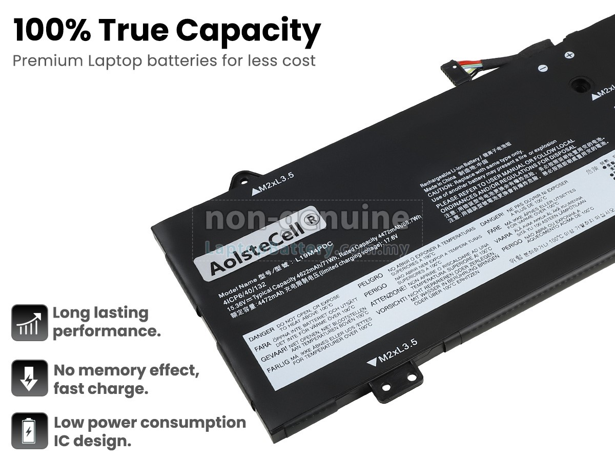 Our Website is your source of high-grade Lenovo laptop batteries! This brand new 71Wh(4 cells) replacement Lenovo L19C4PDC Li-Polymer battery is made with high-grade cells from Samsung, LG and Panasonic to ensure maximum performance. The housing of the Lenovo L19C4PDC battery pack is made of non flammable and very durable plastic, which is fire-retarded and nonperishable when dropped from low heights.