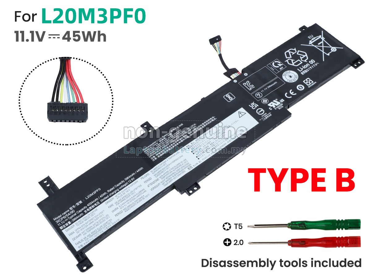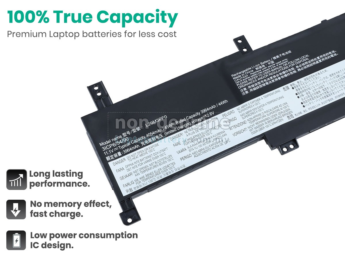 Our Website is your source of high-grade Lenovo laptop batteries! This brand new 38Wh(2 cells) replacement Lenovo L20M2PF0 Li-Polymer battery is made with high-grade cells from Samsung, LG and Panasonic to ensure maximum performance. The housing of the Lenovo L20M2PF0 battery pack is made of non flammable and very durable plastic, which is fire-retarded and nonperishable when dropped from low heights.