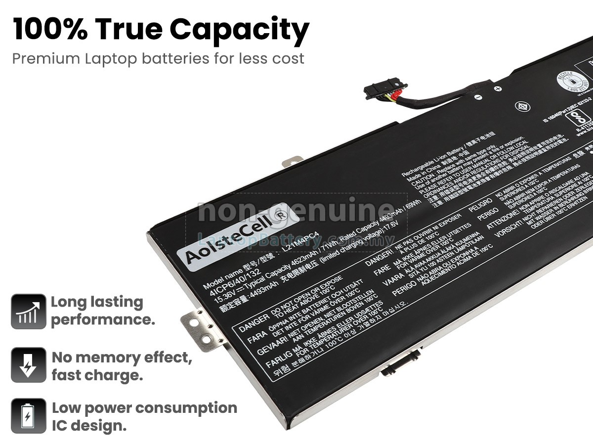 Our Website is your source of high-grade Lenovo laptop batteries! This brand new 71Wh(4 cells) replacement Lenovo L21M4PC4 Li-Polymer battery is made with high-grade cells from Samsung, LG and Panasonic to ensure maximum performance. The housing of the Lenovo L21M4PC4 battery pack is made of non flammable and very durable plastic, which is fire-retarded and nonperishable when dropped from low heights.