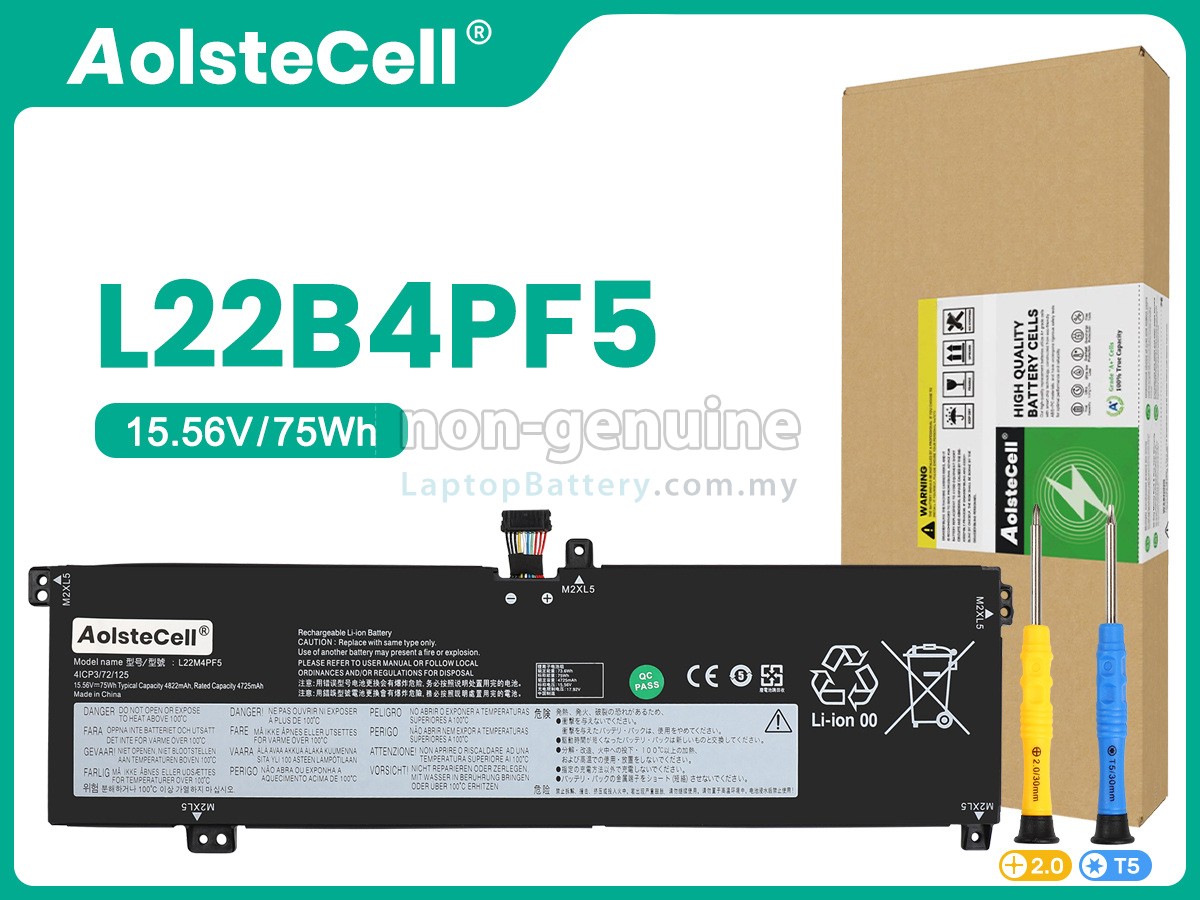 Our Website is your source of high-grade Lenovo laptop batteries! This brand new 75Wh(4 cells) replacement Lenovo L22B4PF5 Li-Polymer battery is made with high-grade cells from Samsung, LG and Panasonic to ensure maximum performance. The housing of the Lenovo L22B4PF5 battery pack is made of non flammable and very durable plastic, which is fire-retarded and nonperishable when dropped from low heights.