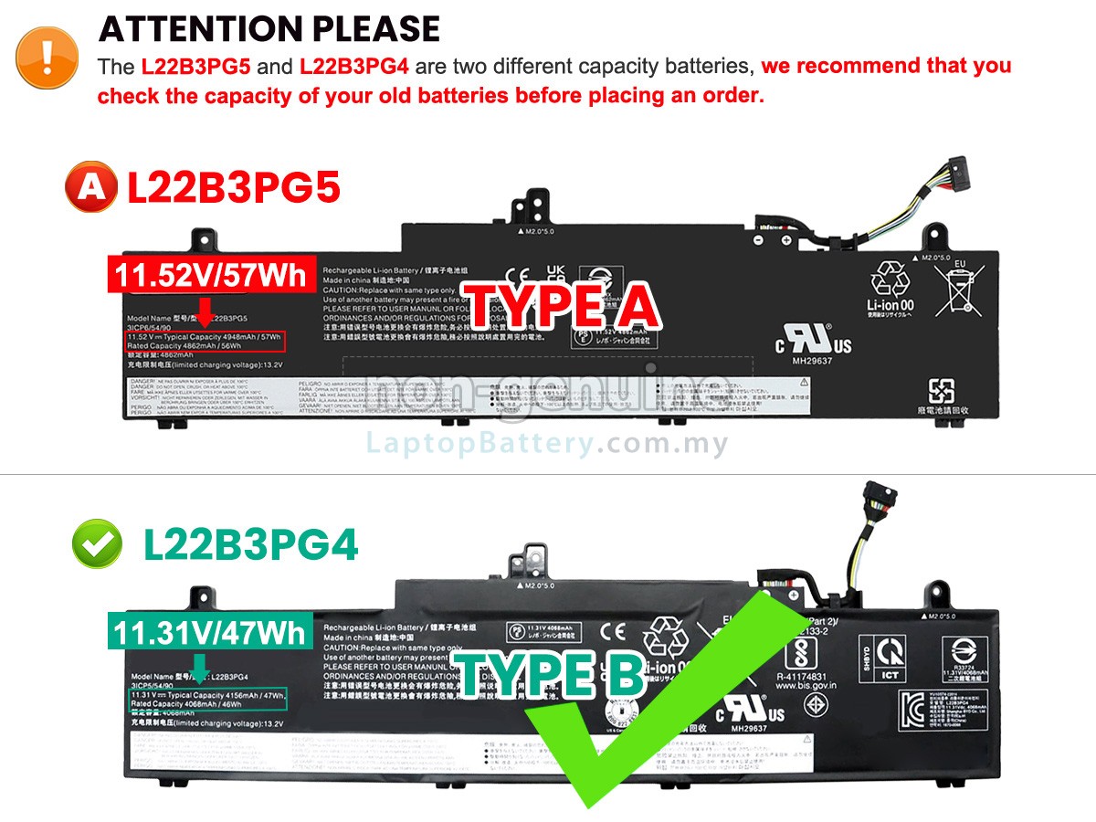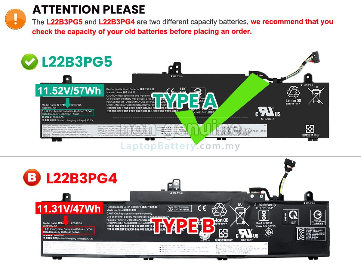 All our high quality replacement batteries for Lenovo L22D3PG5 laptop come with a 1-year warranty. Warranty is applicable if the buyer has installed the battery properly in the device and has treated the battery correctly.