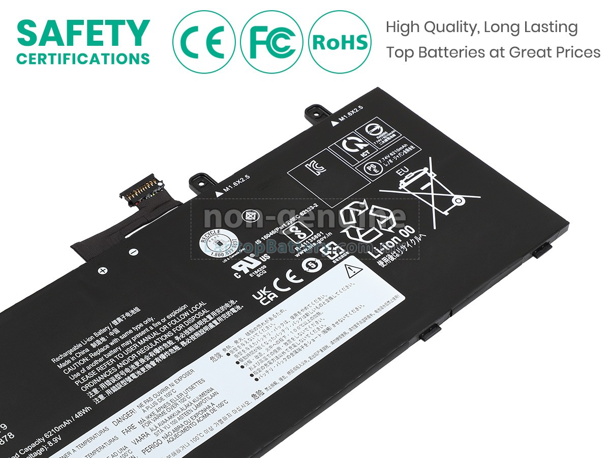 Our Website is your source of high-grade Lenovo laptop batteries! This brand new 49.5Wh(4 cells) replacement Lenovo ThinkPad X13S GEN 1-21BXS00000 Li-Polymer battery is made with high-grade cells from Samsung, LG and Panasonic to ensure maximum performance. The housing of the Lenovo ThinkPad X13S GEN 1-21BXS00000 battery pack is made of non flammable and very durable plastic, which is fire-retarded and nonperishable when dropped from low heights.