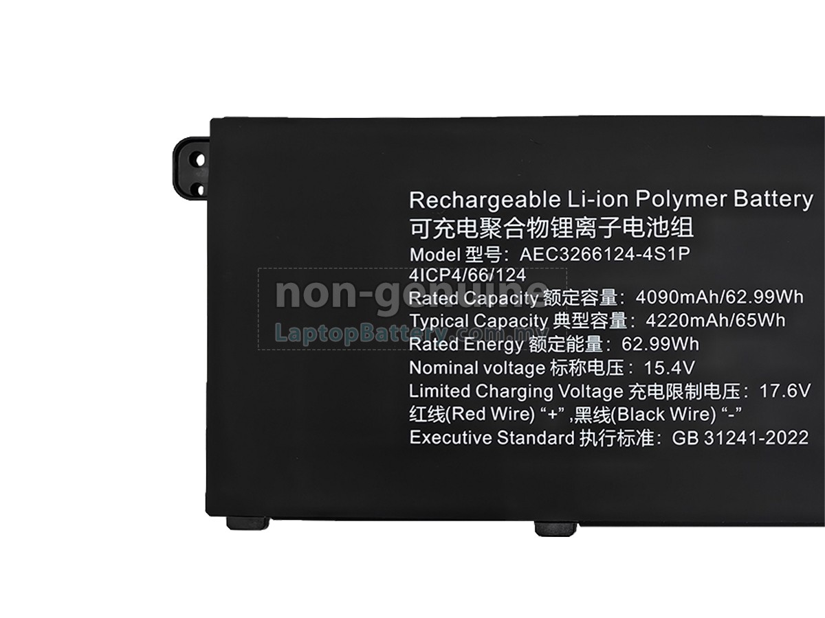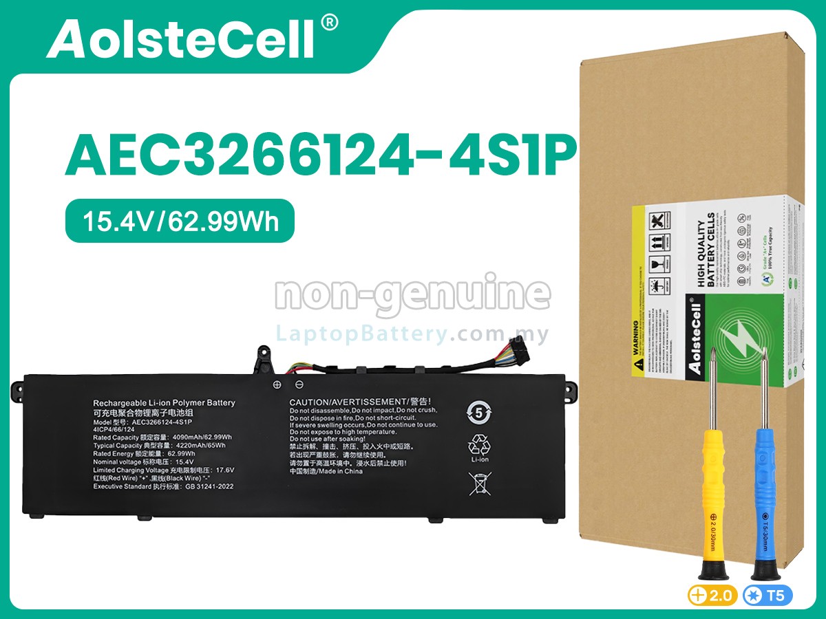 Our Website is your source of high-grade Mechrevo laptop batteries! This brand new 60Wh(4 cells) replacement Mechrevo AEC3266124-4S1P Li-Polymer battery is made with high-grade cells from Samsung, LG and Panasonic to ensure maximum performance. The housing of the Mechrevo AEC3266124-4S1P battery pack is made of non flammable and very durable plastic, which is fire-retarded and nonperishable when dropped from low heights.