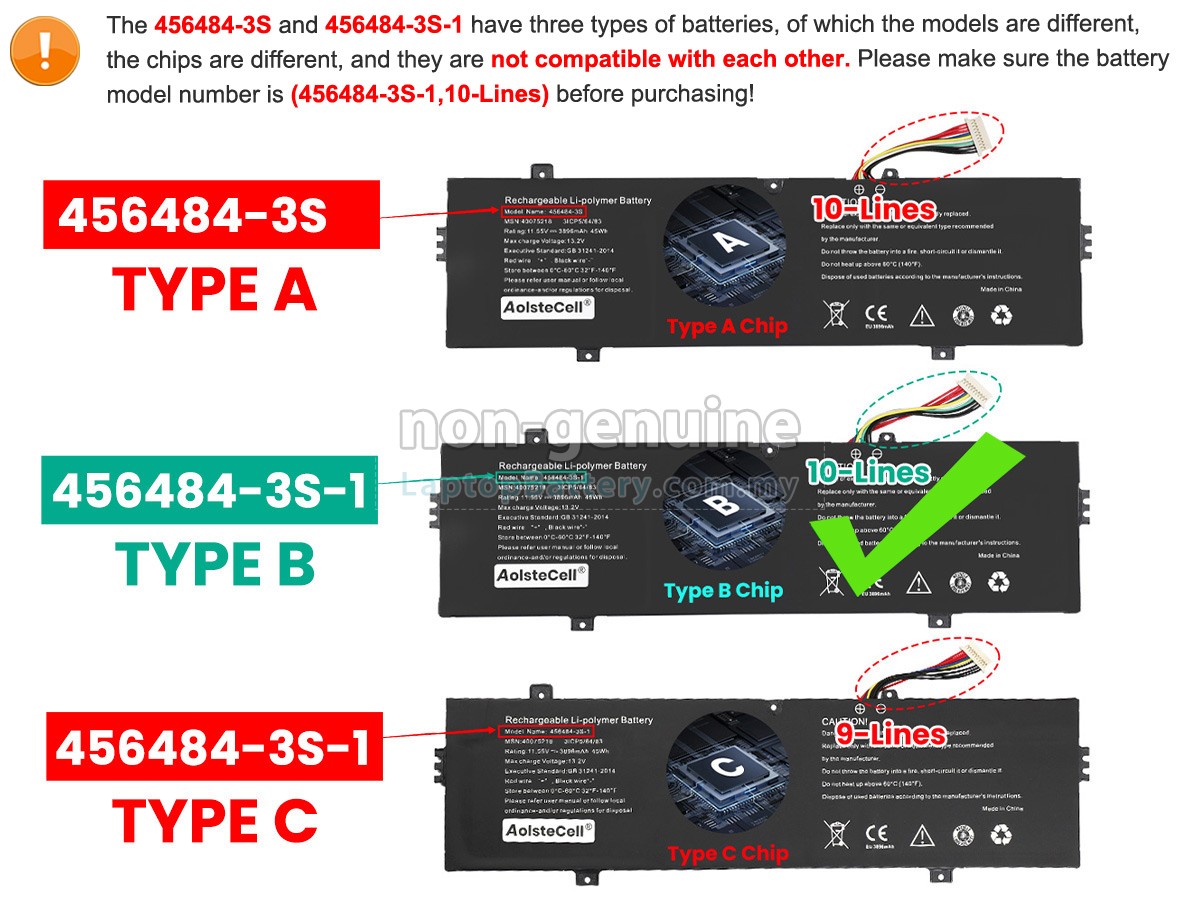456484-3S-1 and 456484-3S are different batteries and are not compatible. Before purchasing this battery, please confirm that your battery model is 【456484-3S-1】. - SKUMYL7194