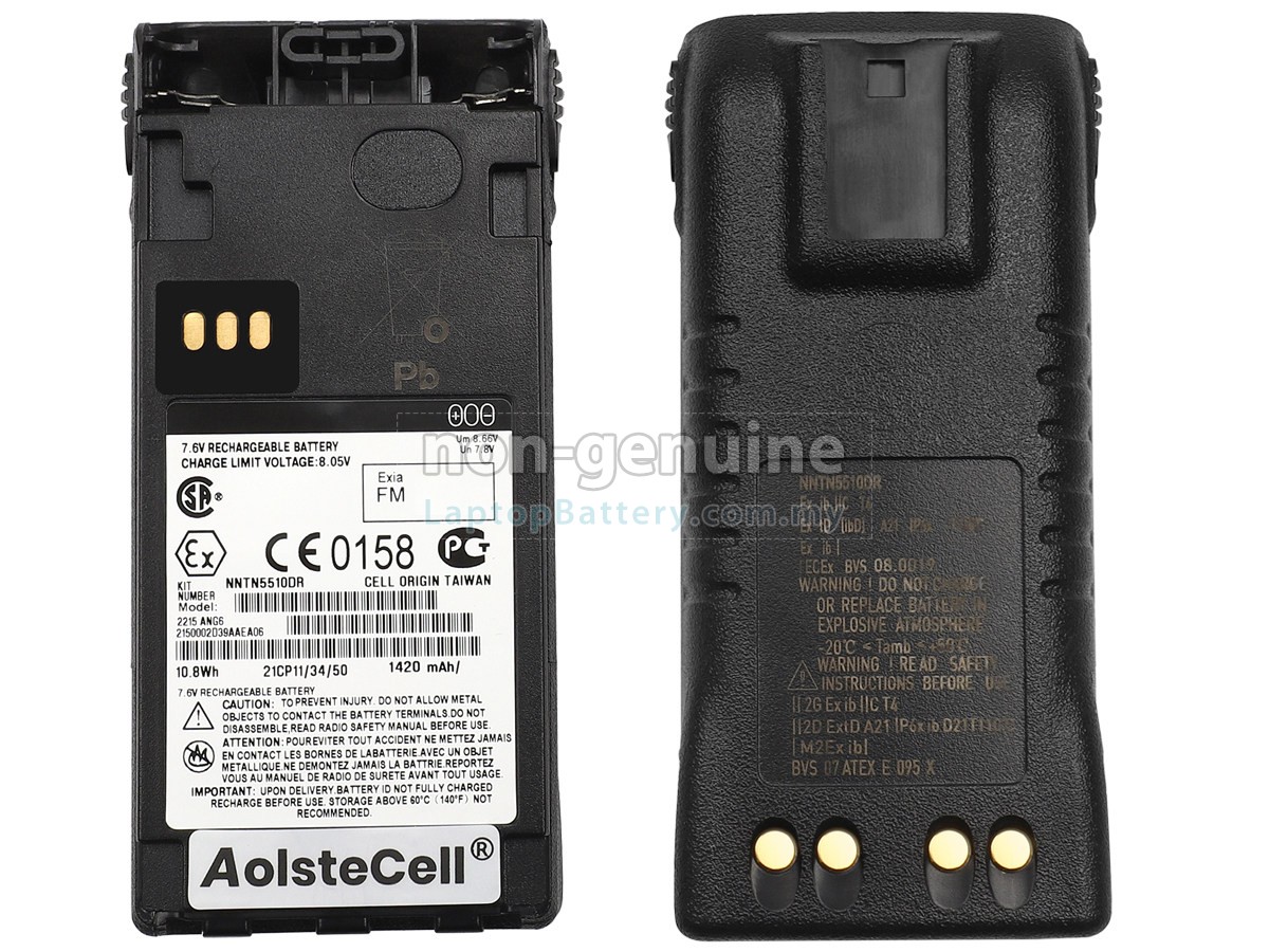 Our Website is your source of high-grade Motorola batteries! This brand new 10.8Wh(2 cells) replacement Motorola NNTN5510DR Li-ion battery is made with high-grade cells from Samsung, LG and Panasonic to ensure maximum performance. The housing of the Motorola NNTN5510DR battery pack is made of non flammable and very durable plastic, which is fire-retarded and nonperishable when dropped from low heights.