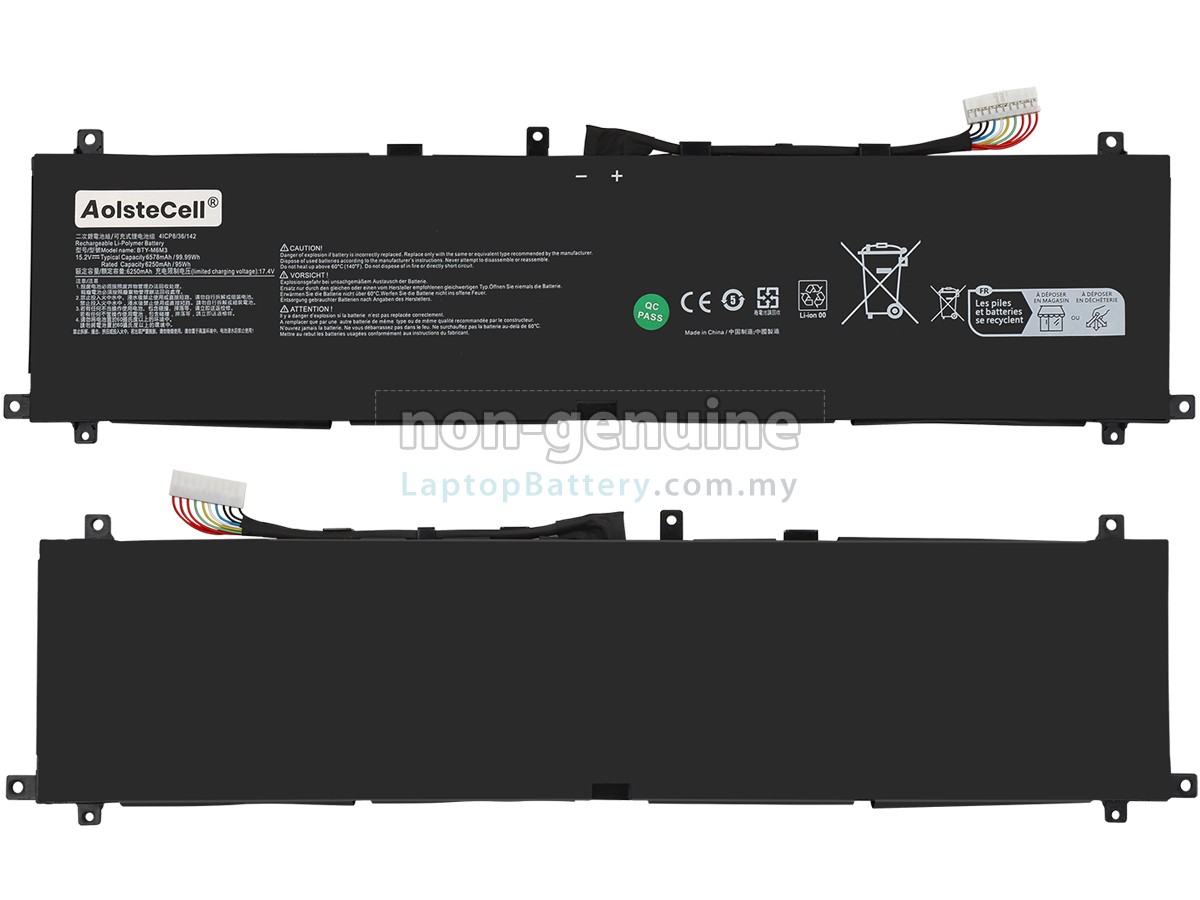 Our Website is your source of high-grade MSI laptop batteries! This brand new 99.99Wh(4 cells) replacement MSI BTY-M6M3 Li-Polymer battery is made with high-grade cells from Samsung, LG and Panasonic to ensure maximum performance. The housing of the MSI BTY-M6M3 battery pack is made of non flammable and very durable plastic, which is fire-retarded and nonperishable when dropped from low heights.