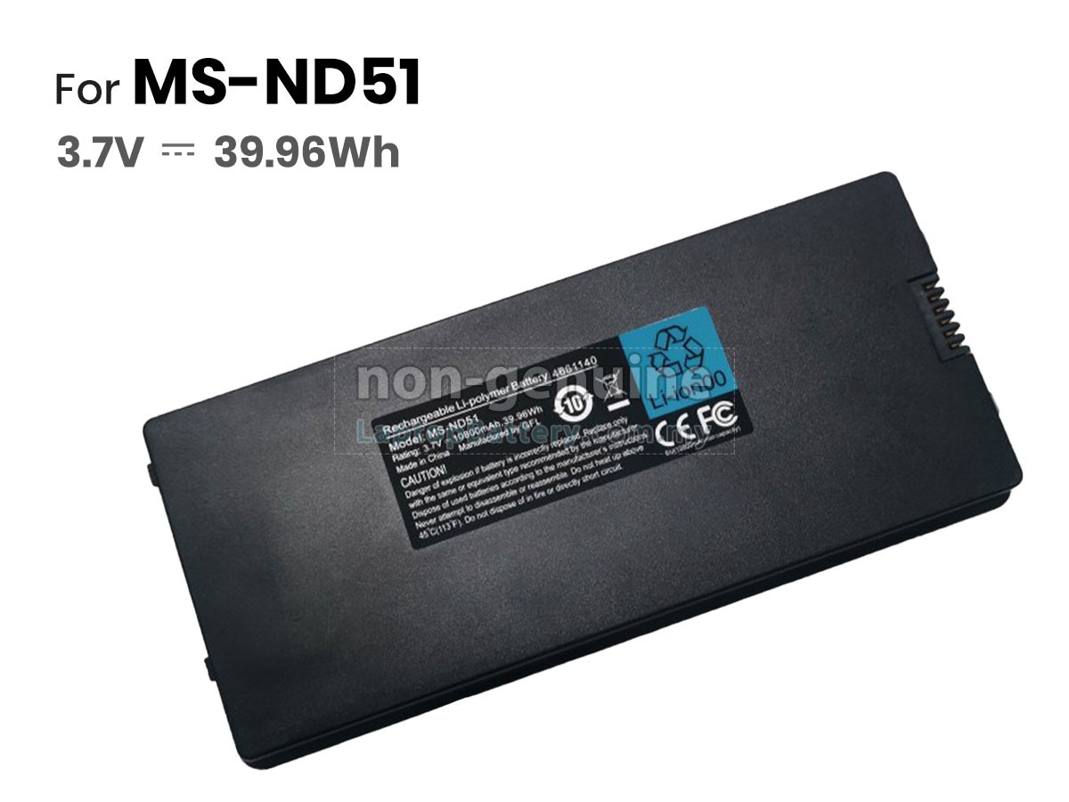 Our Website is your source of high-grade MSI laptop batteries! This brand new 39.96Wh(4 cells) replacement MSI MS-ND51 Li-ion battery is made with high-grade cells from Samsung, LG and Panasonic to ensure maximum performance. The housing of the MSI MS-ND51 battery pack is made of non flammable and very durable plastic, which is fire-retarded and nonperishable when dropped from low heights.