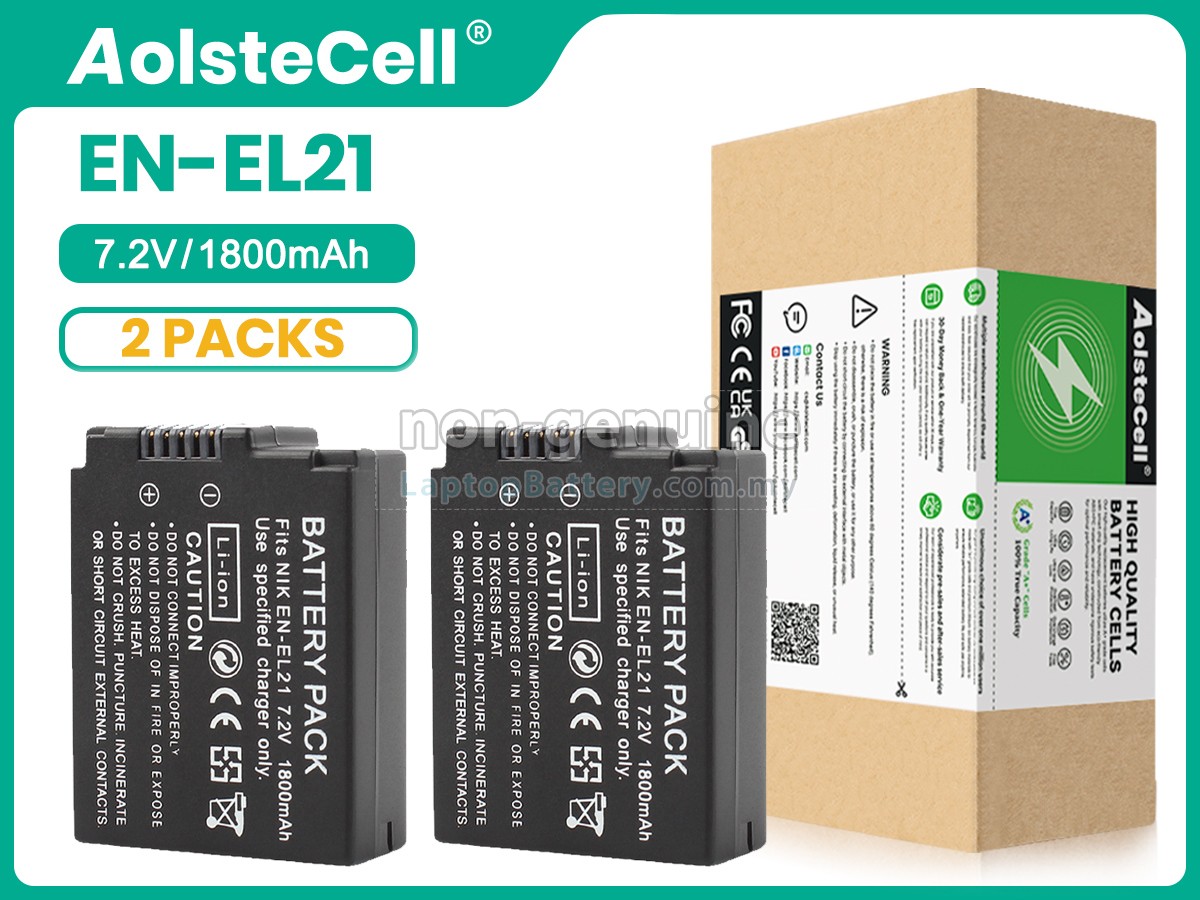 Our Website is your source of high-grade Nikon batteries! This brand new 1800mAh(2 cells) replacement Nikon EN-EL21 Li-ion battery is made with high-grade cells from Samsung, LG and Panasonic to ensure maximum performance. The housing of the Nikon EN-EL21 battery pack is made of non flammable and very durable plastic, which is fire-retarded and nonperishable when dropped from low heights.