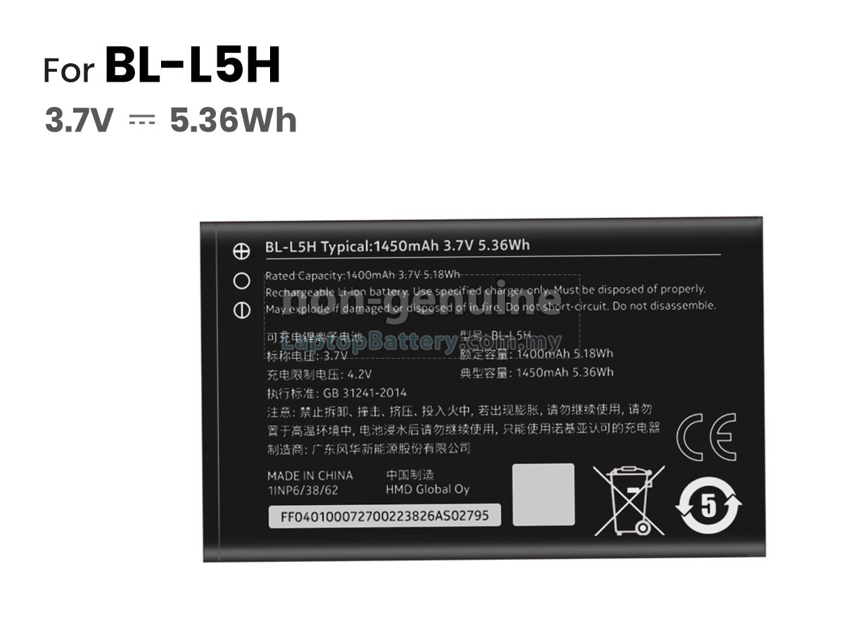 All our high-grade replacement batteries for Nokia 150 have been tested to prove that they can match or surpass original Nokia battery performance and fit with Original Manufacturer's Specifications. In compliance with international standards, they obtain a series of rigorous safety certifications such as CE, UL, ROHS, ISO9001/9002. In general, this replacement Nokia 150 battery can be charged/discharged up to more than 600 cycles.