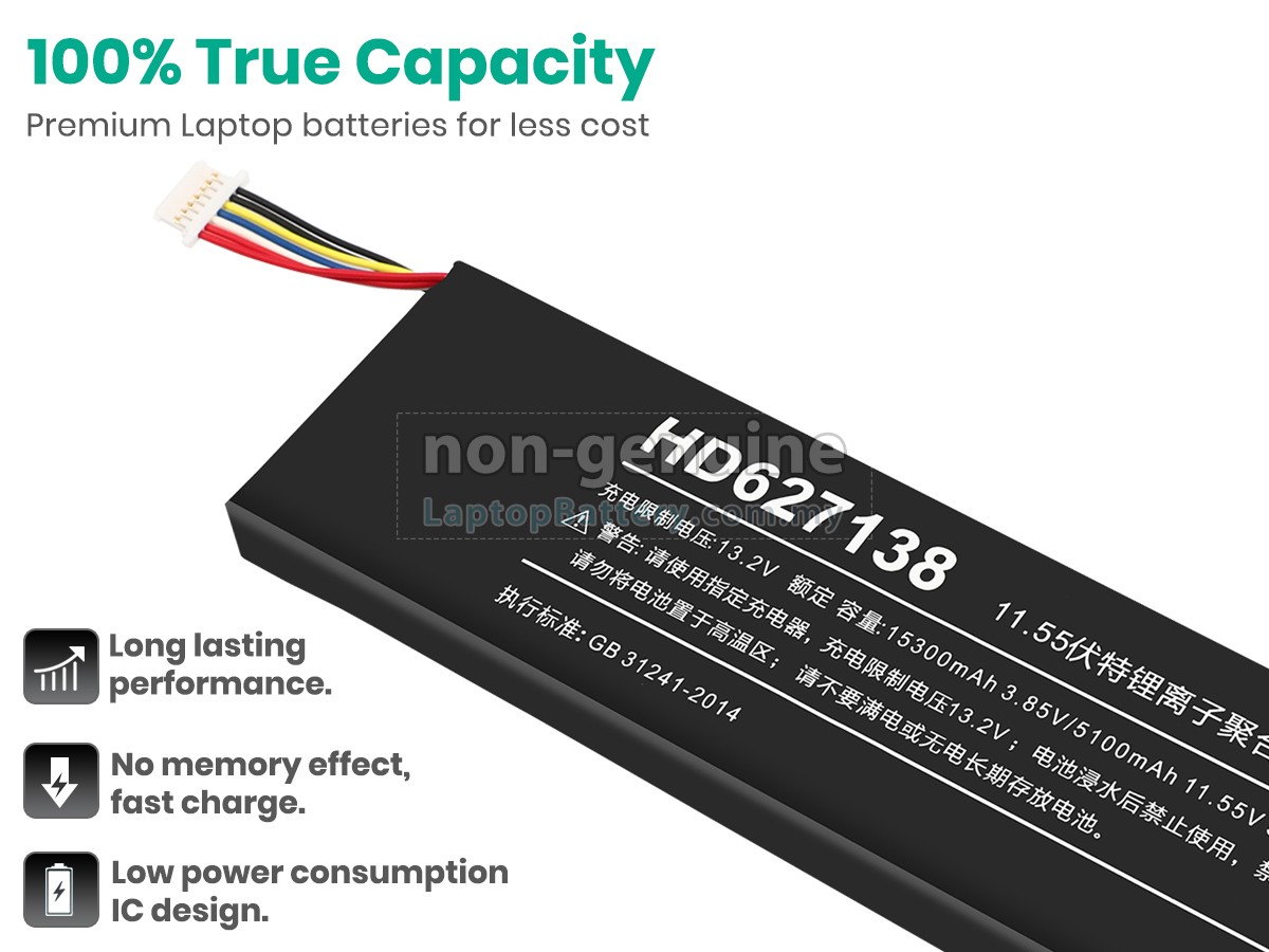 Our Website is your source of high-grade One netbook laptop batteries! This brand new 58.91Wh(3 cells) replacement One netbook HD627138 Li-ion battery is made with high-grade cells from Samsung, LG and Panasonic to ensure maximum performance. The housing of the One netbook HD627138 battery pack is made of non flammable and very durable plastic, which is fire-retarded and nonperishable when dropped from low heights.