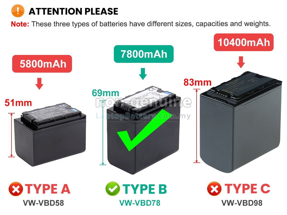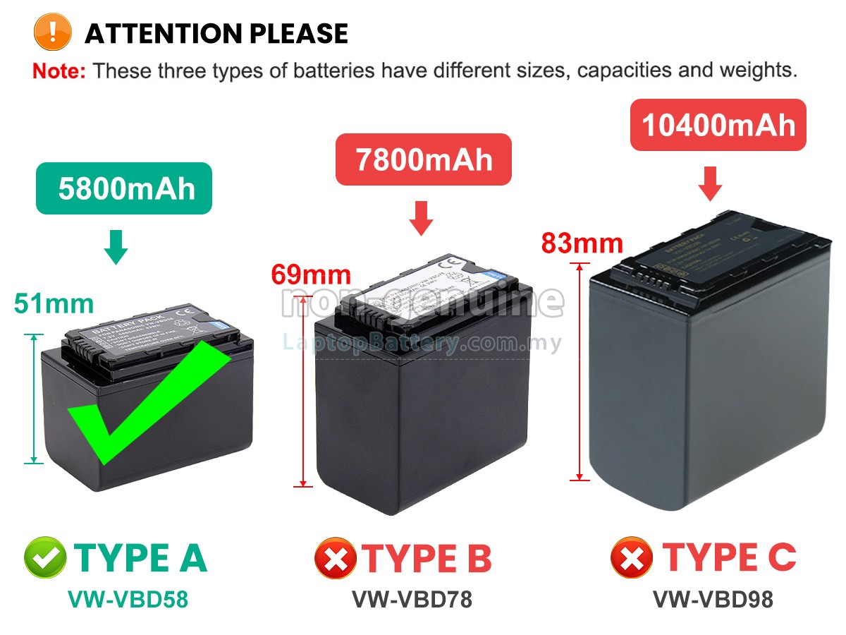 VW-VBD58/78/98 has capacity and size differences, can be compatible with the use of larger capacity battery will have a part of the battery bulge. - SKUMYL6775