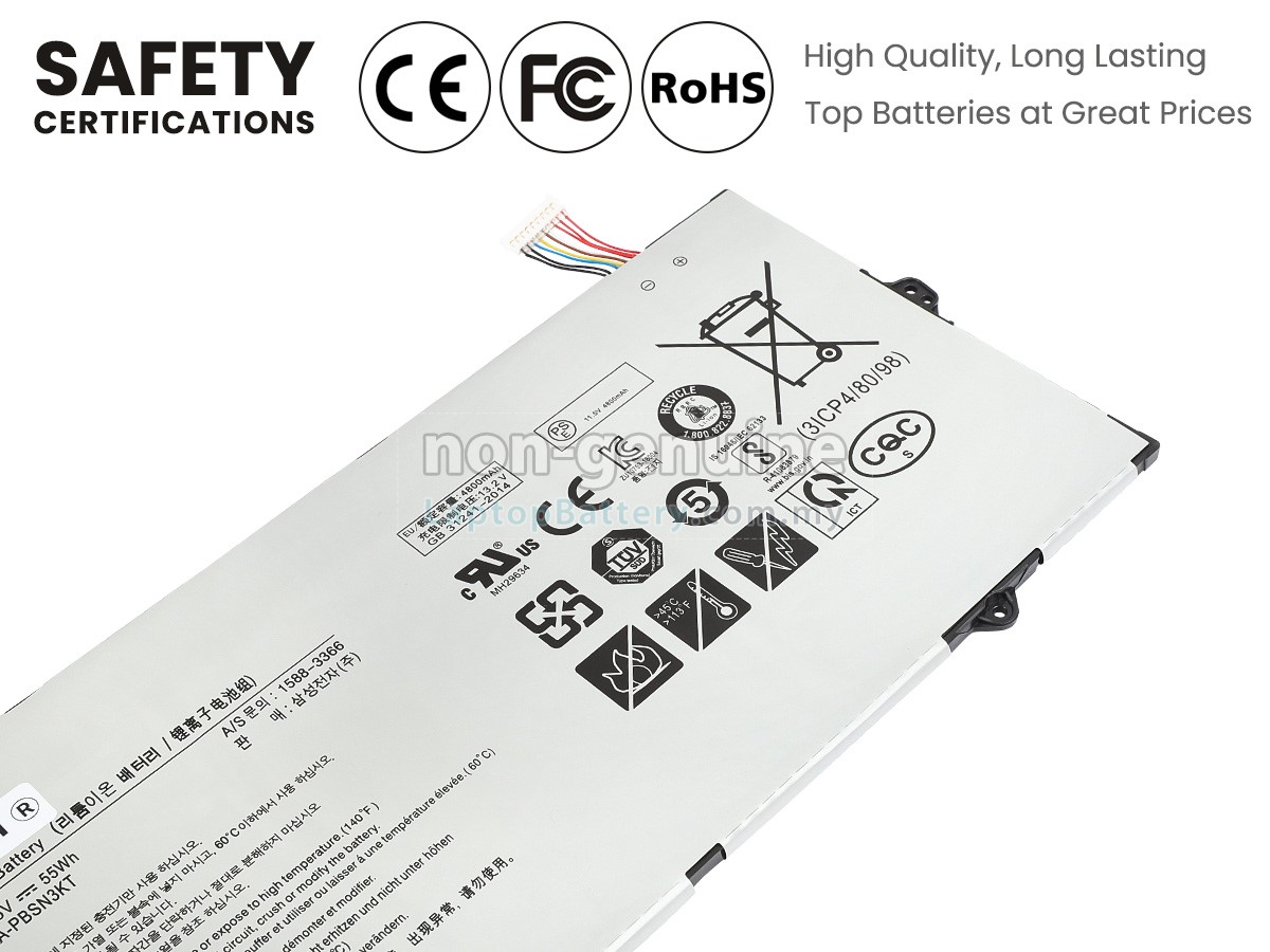 Our Website is your source of high-grade Samsung laptop batteries! This brand new 55Wh(3 cells) replacement Samsung AA-PBSN3KT Li-Polymer battery is made with high-grade cells from Samsung, LG and Panasonic to ensure maximum performance. The housing of the Samsung AA-PBSN3KT battery pack is made of non flammable and very durable plastic, which is fire-retarded and nonperishable when dropped from low heights.