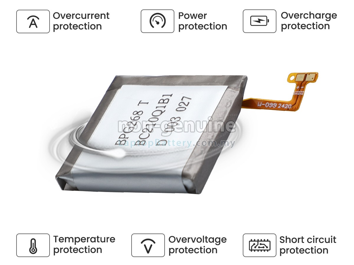 Our Website is your source of high-grade Samsung watch batteries! This brand new 417mAh(1 cells) replacement Samsung EB-BR965ABY Li-ion battery is made with high-grade cells from Samsung, LG and Panasonic to ensure maximum performance. The housing of the Samsung EB-BR965ABY battery pack is made of non flammable and very durable plastic, which is fire-retarded and nonperishable when dropped from low heights.