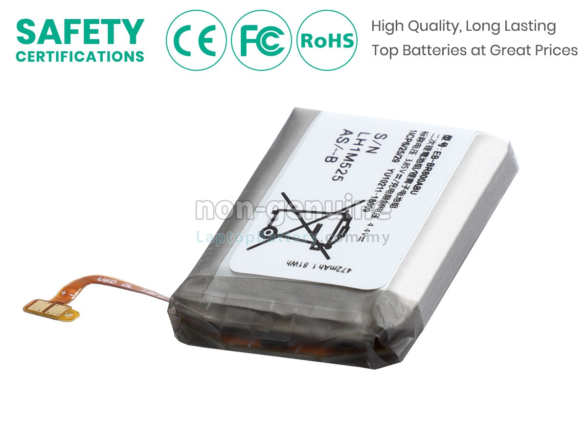 Our Website is your source of high-grade Samsung watch batteries! This brand new 472mAh(1 cells) replacement Samsung SM-R805 Li-Polymer battery is made with high-grade cells from Samsung, LG and Panasonic to ensure maximum performance. The housing of the Samsung SM-R805 battery pack is made of non flammable and very durable plastic, which is fire-retarded and nonperishable when dropped from low heights.