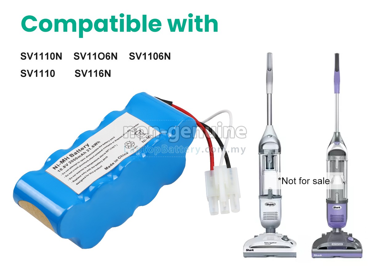 Our Website is your source of high-grade Shark batteries for Vacuum Cleaners! This brand new 21.6Wh(9 cells) replacement Shark SV11O6N Ni-MH battery is made with high-grade cells from Samsung, LG and Panasonic to ensure maximum performance. The housing of the Shark SV11O6N battery pack is made of non flammable and very durable plastic, which is fire-retarded and nonperishable when dropped from low heights.