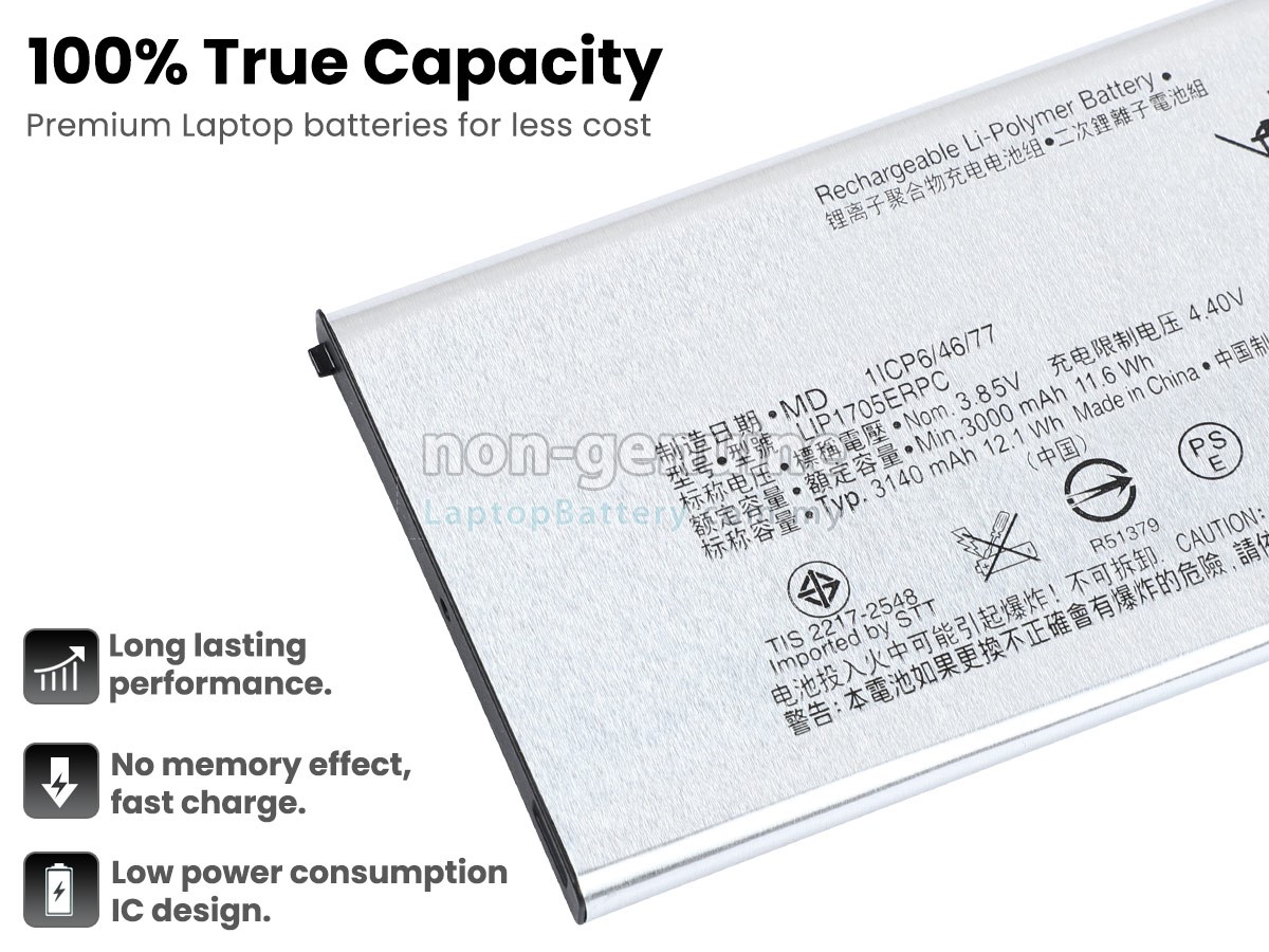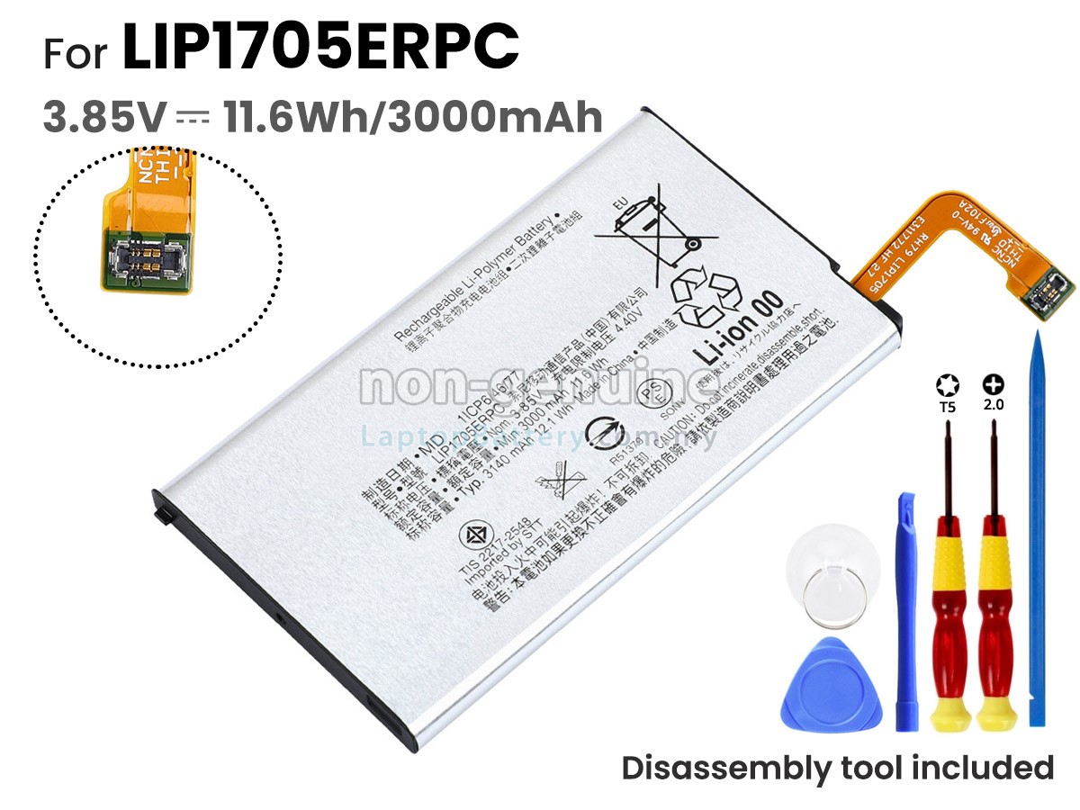 Our Website is your source of high-grade Sony batteries! This brand new 11.6Wh(1 cells) replacement Sony LIP1705ERPC Li-Polymer battery is made with high-grade cells from Samsung, LG and Panasonic to ensure maximum performance. The housing of the Sony LIP1705ERPC battery pack is made of non flammable and very durable plastic, which is fire-retarded and nonperishable when dropped from low heights.