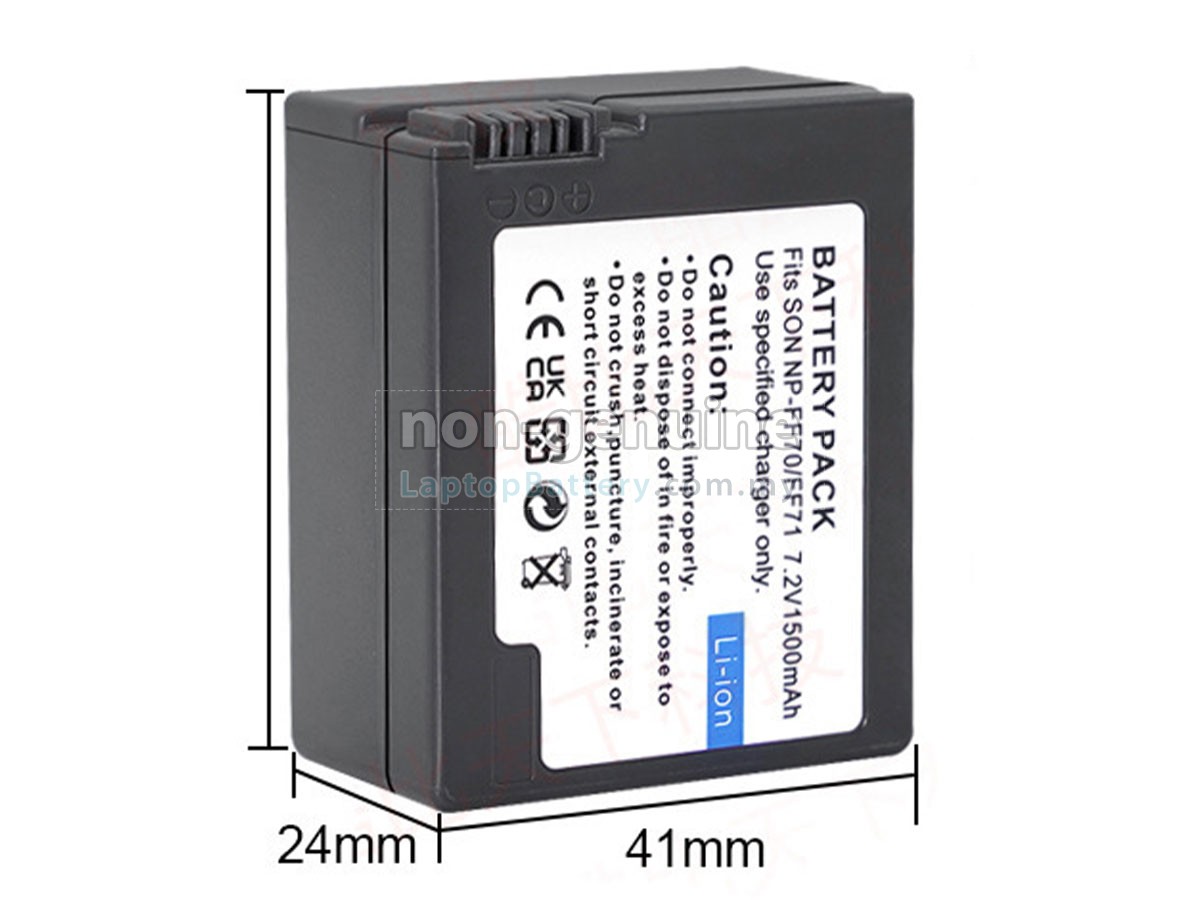 Our Website is your source of high-grade Sony batteries! This brand new 1500mAh(2 cells) replacement Sony NP-FF71S Li-ion battery is made with high-grade cells from Samsung, LG and Panasonic to ensure maximum performance. The housing of the Sony NP-FF71S battery pack is made of non flammable and very durable plastic, which is fire-retarded and nonperishable when dropped from low heights.