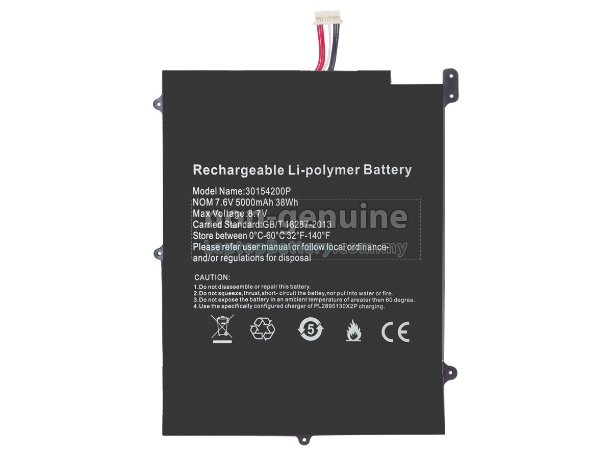 Our Website is your source of high-grade Teclast laptop batteries! This brand new 38Wh(4 cells) replacement Teclast 30154200P Li-Polymer battery is made with high-grade cells from Samsung, LG and Panasonic to ensure maximum performance. The housing of the Teclast 30154200P battery pack is made of non flammable and very durable plastic, which is fire-retarded and nonperishable when dropped from low heights.