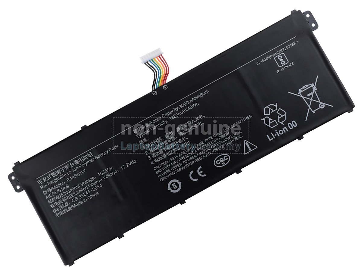 Our Website is your source of high-grade XiaoMi laptop batteries! This brand new 46Wh(4 cells) replacement XiaoMi R14B01W Li-Polymer battery is made with high-grade cells from Samsung, LG and Panasonic to ensure maximum performance. The housing of the XiaoMi R14B01W battery pack is made of non flammable and very durable plastic, which is fire-retarded and nonperishable when dropped from low heights.