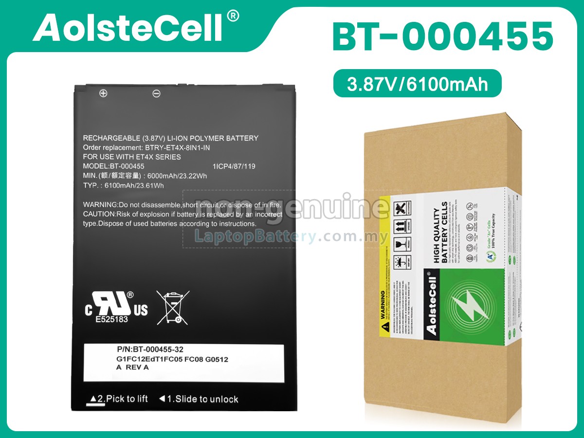 Our Website is your source of high-grade Zebra batteries! This brand new 6100mAh(1 cells) replacement Zebra BT-000455 Li-ion battery is made with high-grade cells from Samsung, LG and Panasonic to ensure maximum performance. The housing of the Zebra BT-000455 battery pack is made of non flammable and very durable plastic, which is fire-retarded and nonperishable when dropped from low heights.
